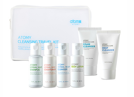 Atomy дорожный набор 6 - это самые продаваемые средства для очищения и ухода за кожей и волосами, но в меньшем объеме.