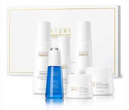 Пятиступенчатая система по уходу за кожей Абсолют Сноу от Atomy включает в себя: