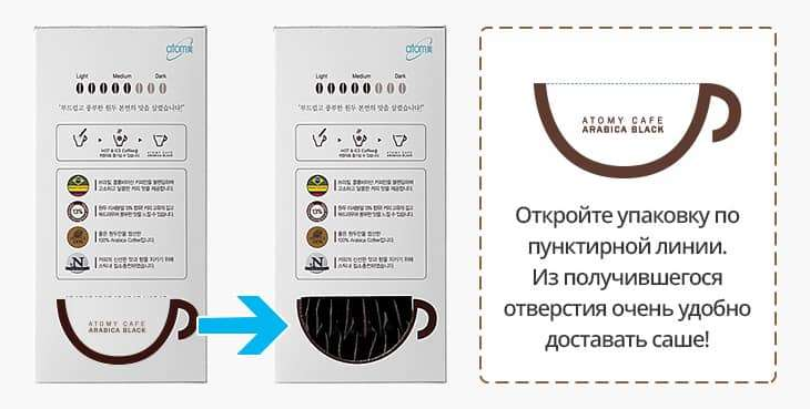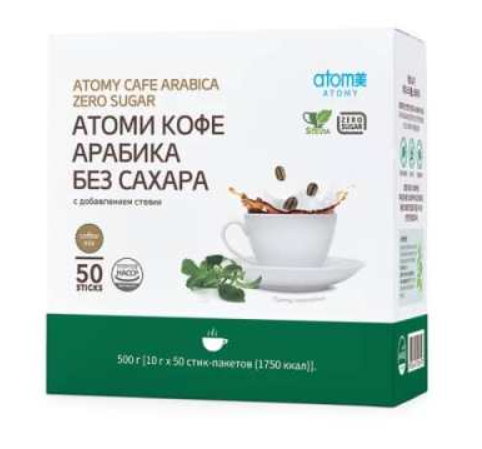 АТОМИ КОФЕ БЕЗ САХАРА – Кофе 3 в 1 без содержания сахара состоит из 100% зерен колумбийской арабики, молока самого высокого качества, а сладкий вкус придает стевия. Насладитесь новым изысканным вкусом кофе Атоми!